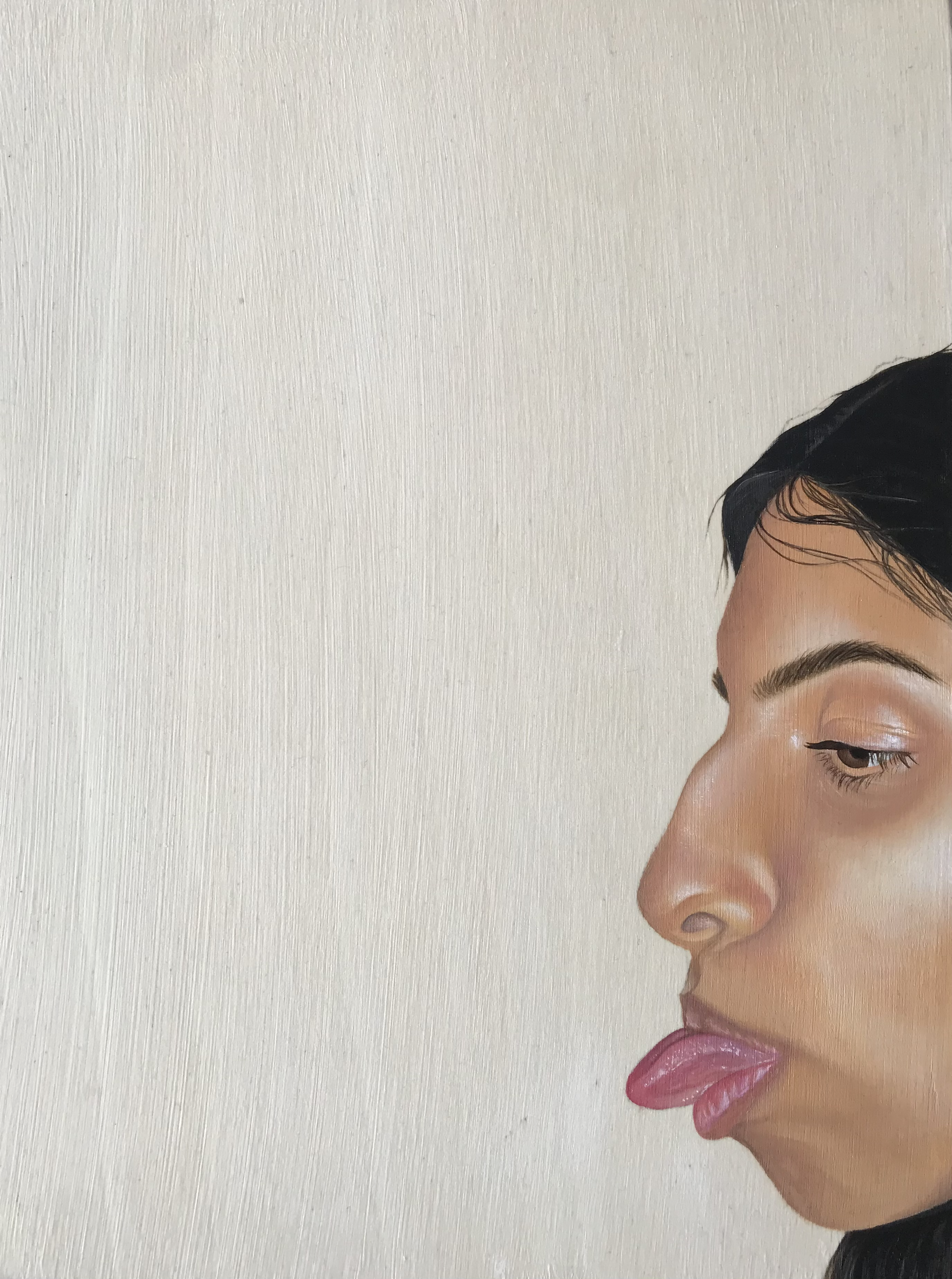 This is the second painting in a series titled, “Try Humour”: a response to how I feel about my identity as a brown artist and the constant pressure to make my artwork palatable/relatable to the white audience. Almost as if I am performing for them and constantly having to consider the white gaze.